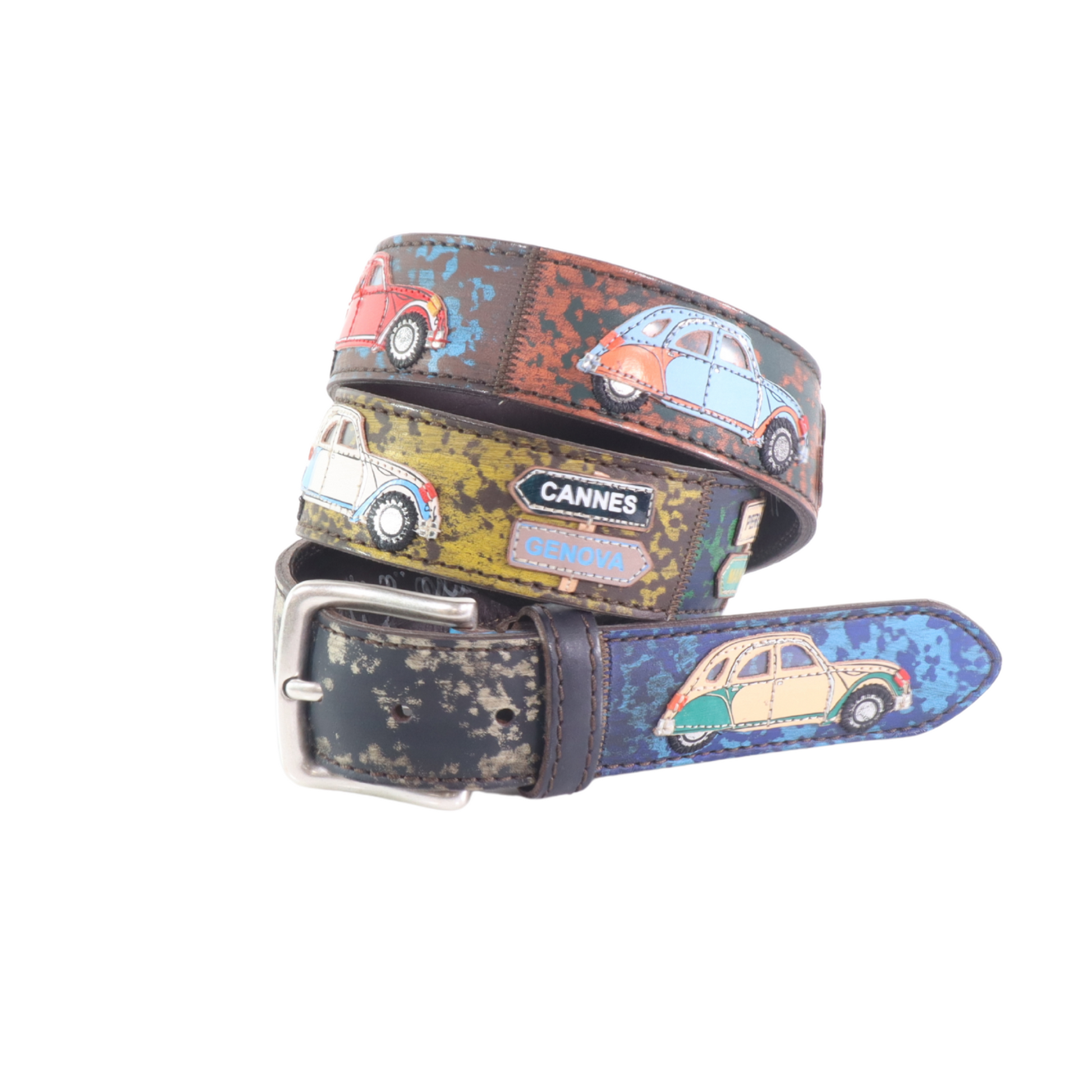 ispirata alla leggendaria Citroën 2CV, questa cintura celebra il design che non ha bisogno di gridare per farsi notare. Pelle morbida, volutamente minimale, trattata con una finitura naturale che ricorda la tela del tetto apribile. La fibbia, leggera ma solida, richiama le forme razionali dei dettagli meccanici: nessun fronzolo, solo funzione trasformata in forma.