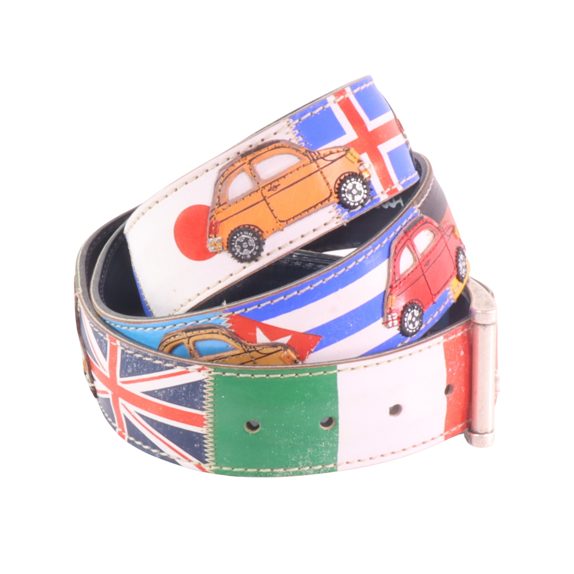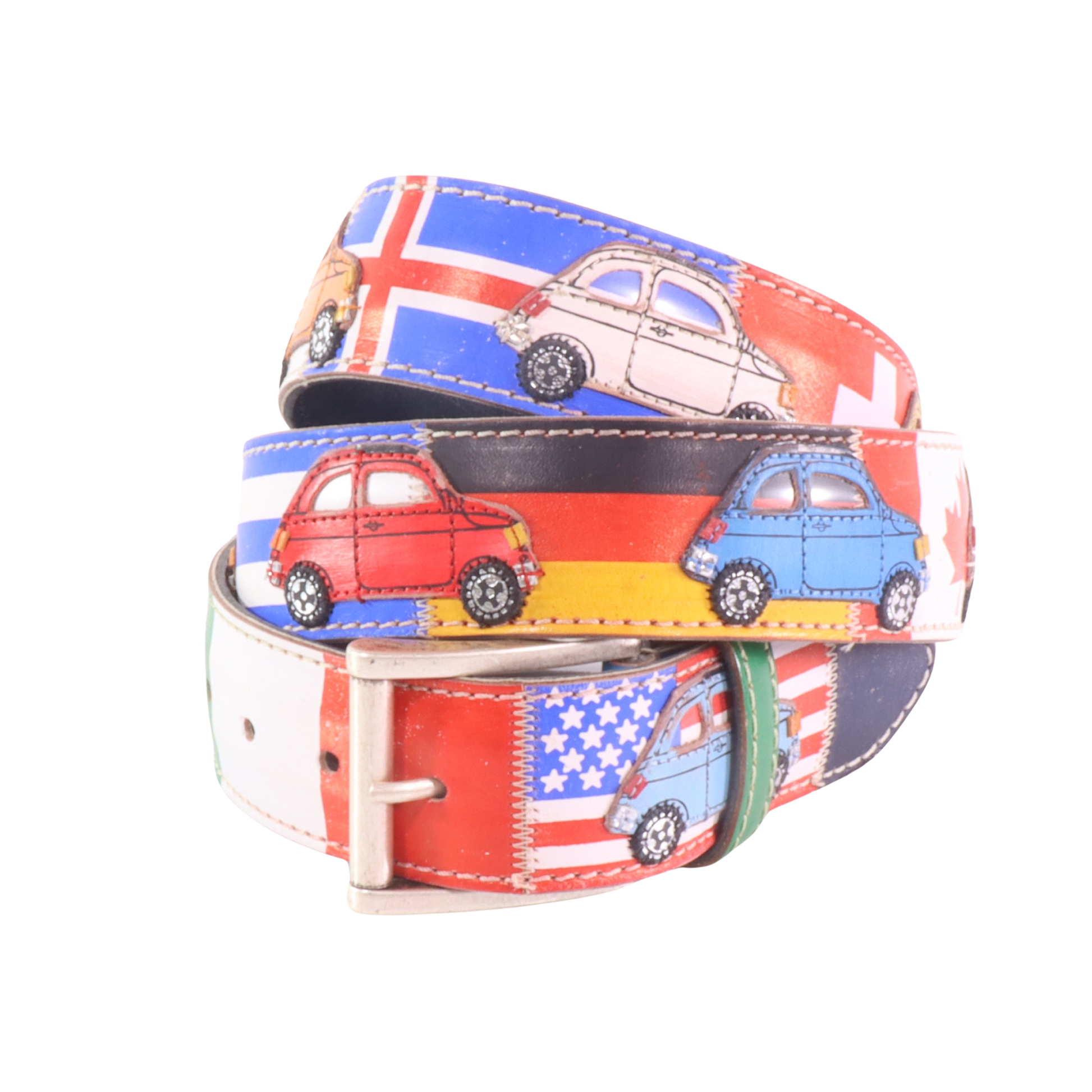 Applicazioni artistiche: sagome ispirate al mondo Fiat 500 e alle bandiere di tutto il mondo, simboli di viaggio e libertà, ritagliate, dipinte e cucite interamente a mano nel nostro Laboratorio.