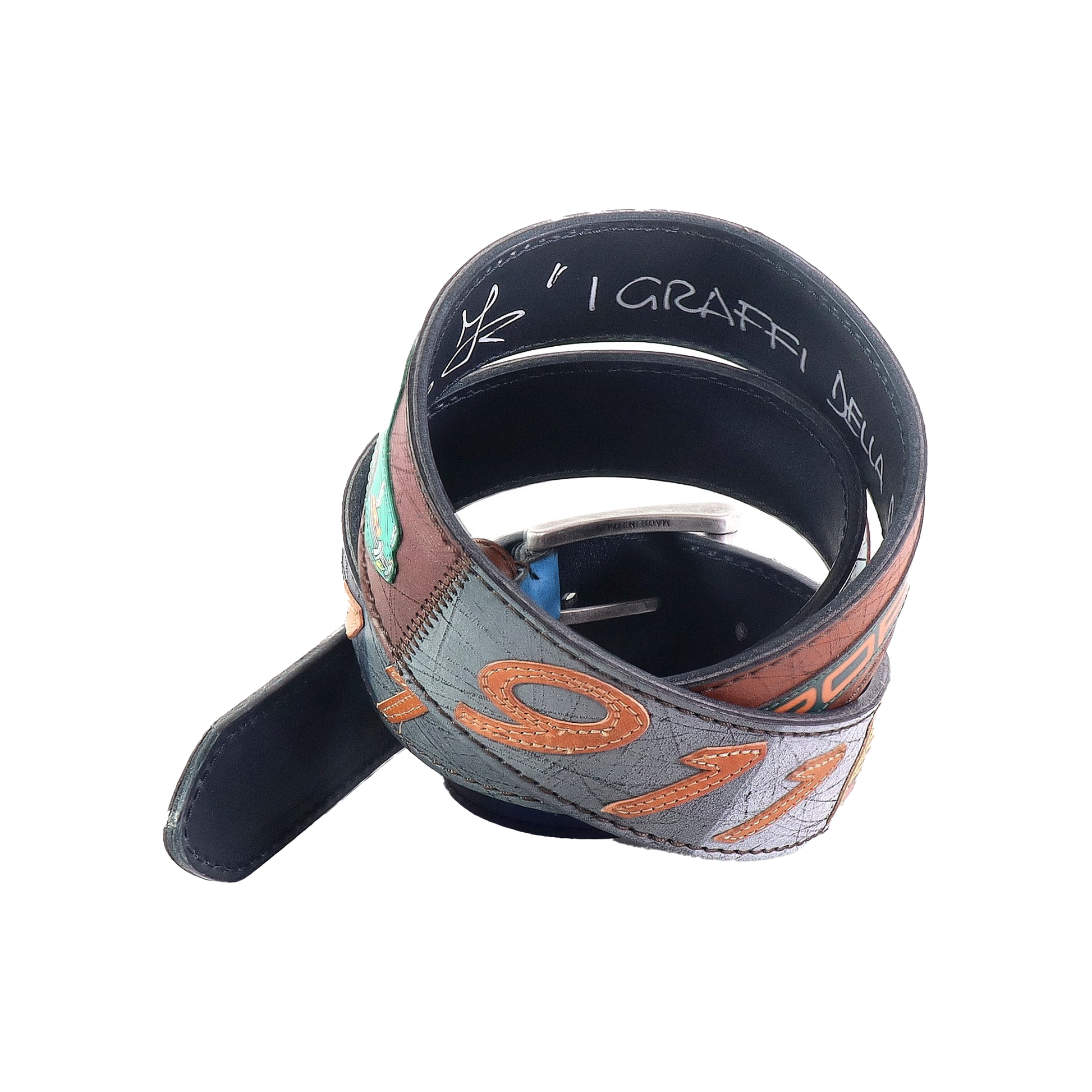 Firma d’autore: ogni motivo è disegnato a mano libera dalla nostra artista, rendendo ogni cintura un pezzo unico.