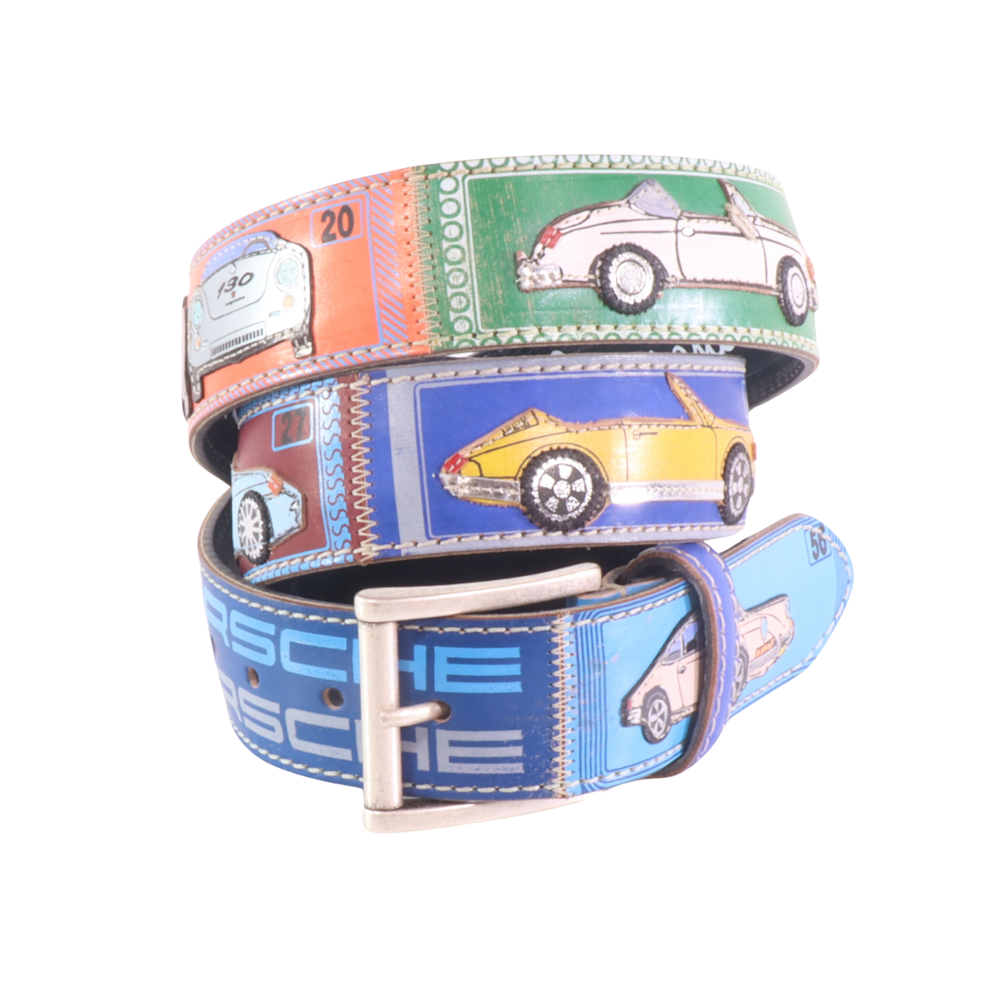 Applicazioni artistiche: sagome ispirate al mondo Porsche 911, ritagliate, dipinte e cucite interamente a mano nel nostro Laboratorio.